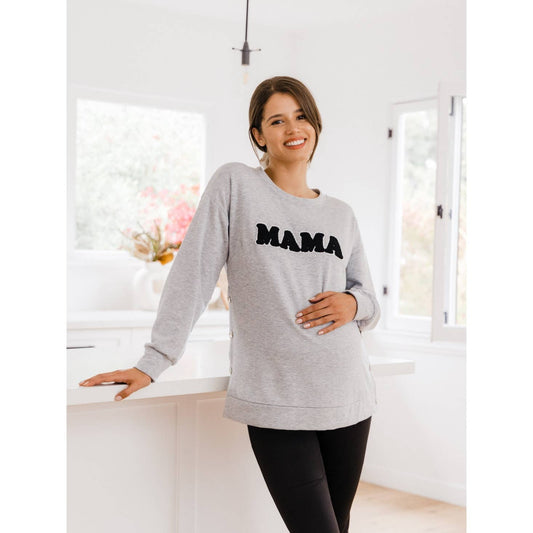 Crewneck Maternity/ Nursing Sweatshirt with Mama Patch: Heather Grey